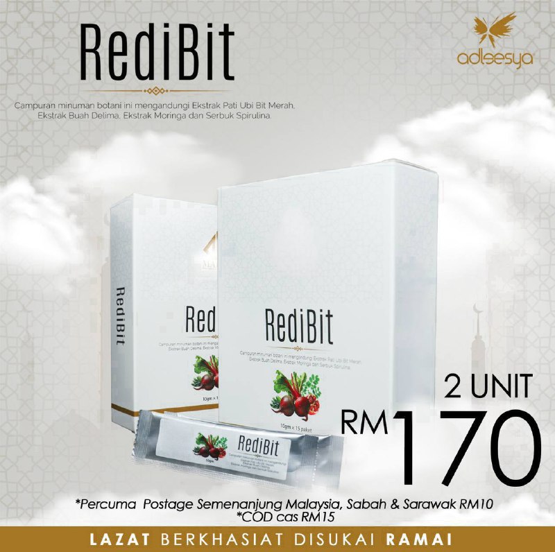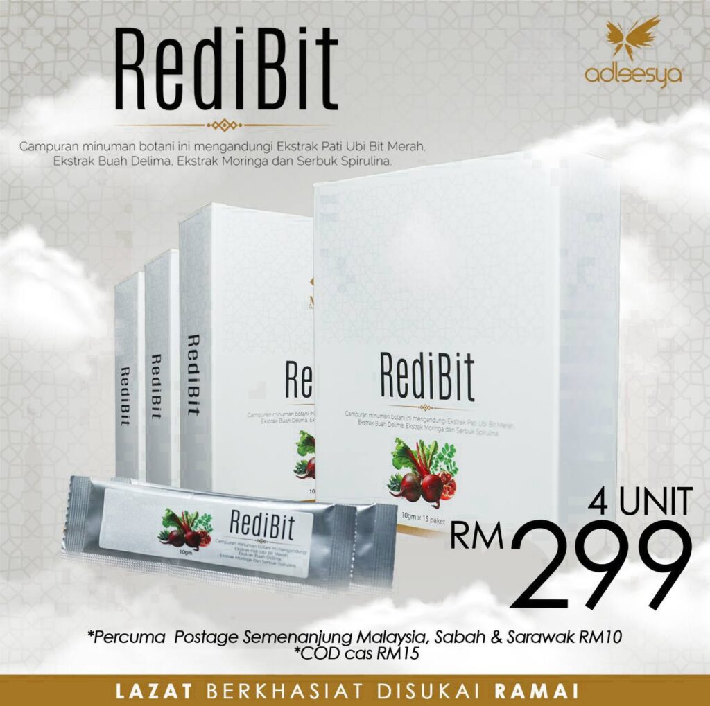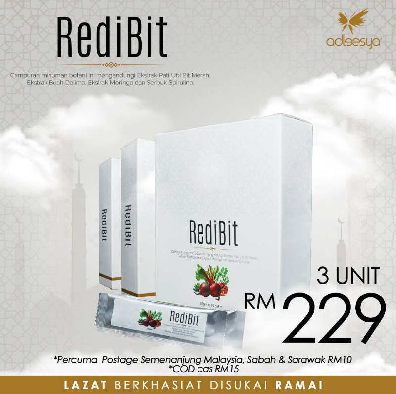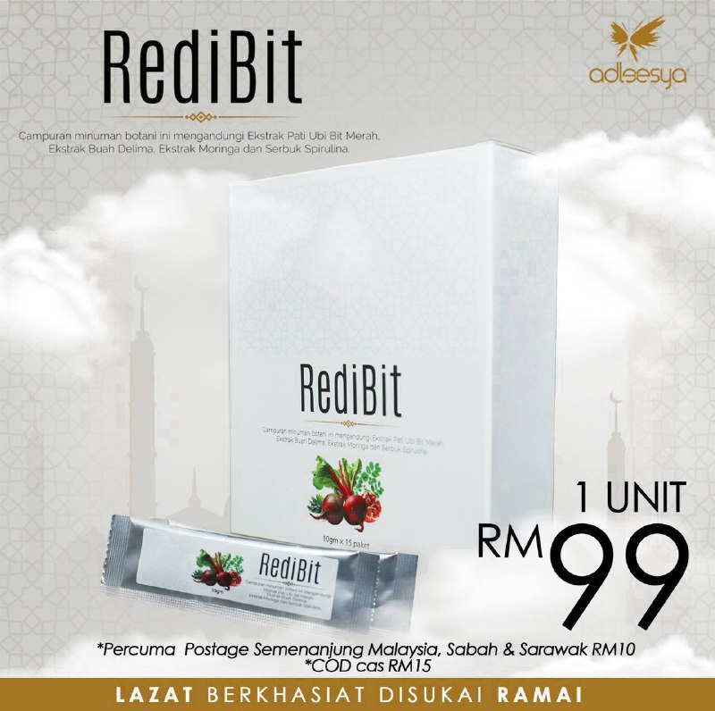 Anda boleh membuat pembelian melalui laman web rasmi (redibit.shop) dengan pilihan COD atau pembayaran online yang selamat.
