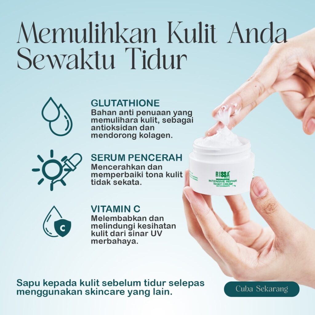 Cara Lama (Produk Biasa) ❌ | Cara Baru (Rissa Skin Night Cream) ✅ |